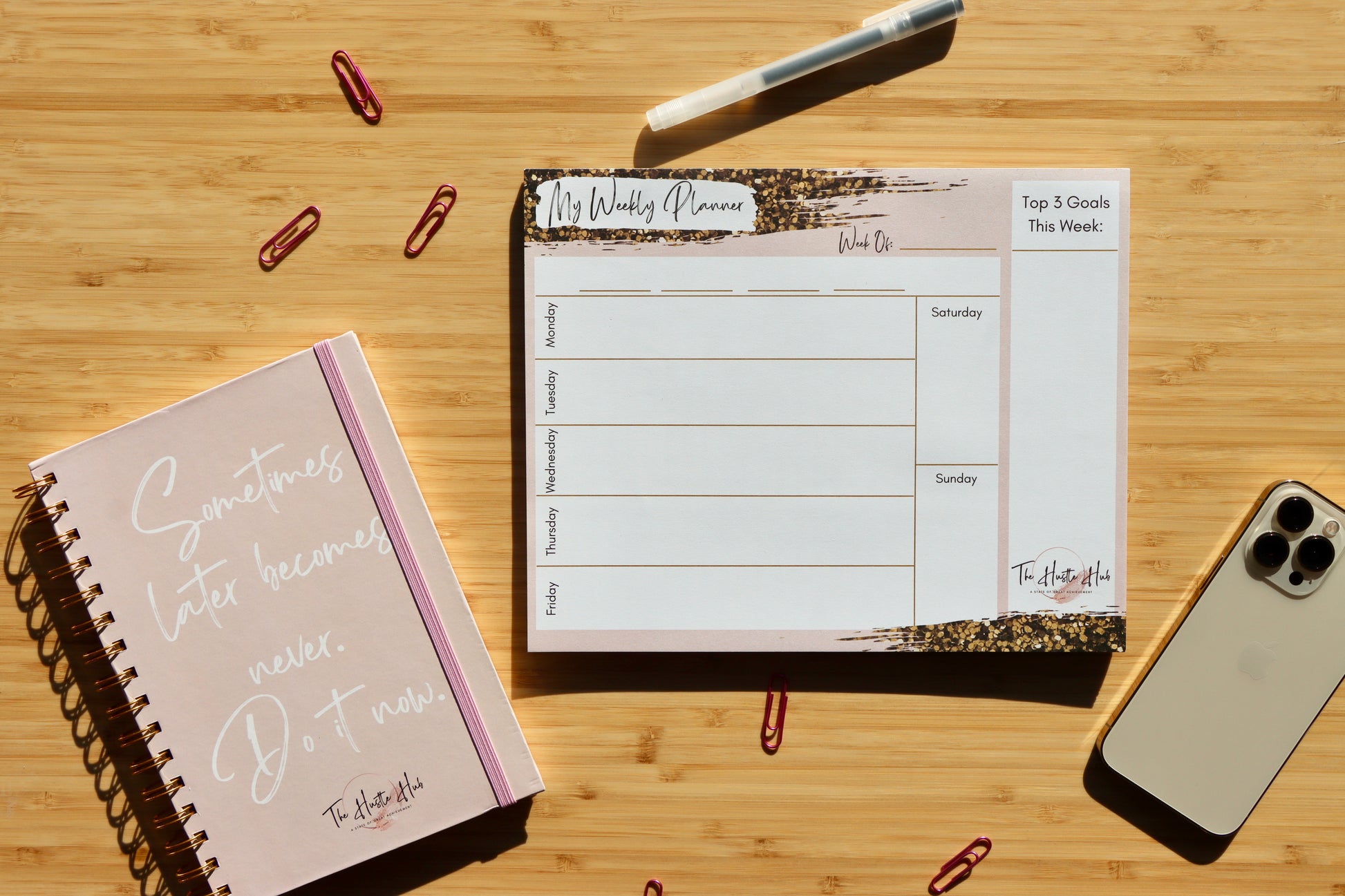 Be ready for anything with The Luxe Weekly Planner paired with The Go-Getter Diary. The perfect pair for weekly and daily planning to be incredibly organised in the most luxe way.